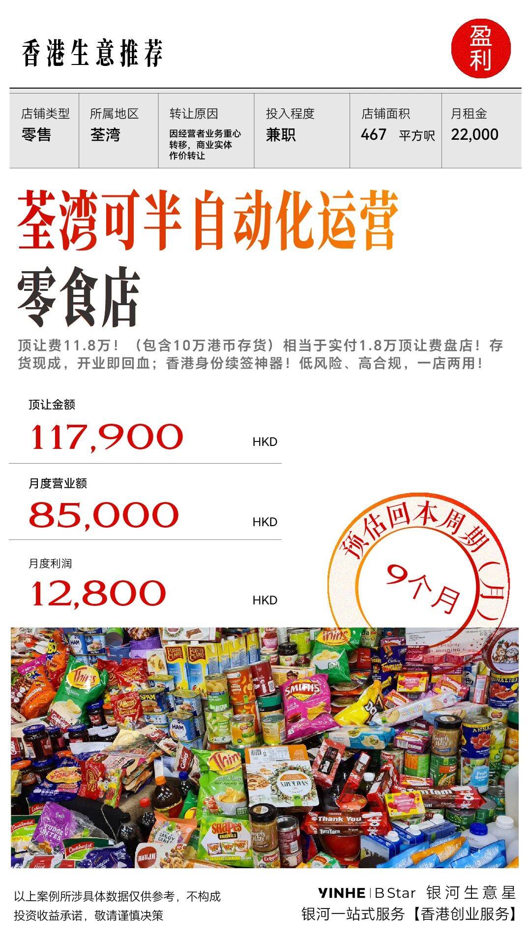 涵盖餐饮、零售、科技服务等多个领域,所有项目均持有香港必备经营牌照(如餐饮牌照、商业登记证等),无需用户额外办理。