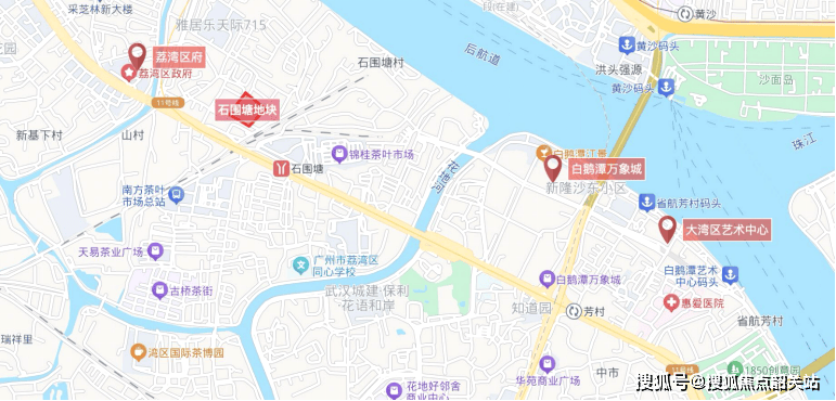1. 项目核心区位:广州市荔湾区白鹅潭后航道核心板块,属于白鹅潭国际中央商务区规划范围内,坐拥二线江景资源,紧邻珠江后航道,享受“一江两岸三带”规划的核心红利,地理位置得天独厚,是荔湾从“老城”向“新核”转型的核心承载项目之一。