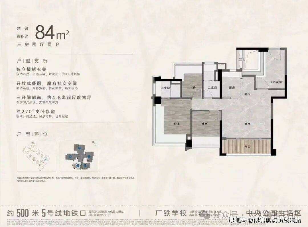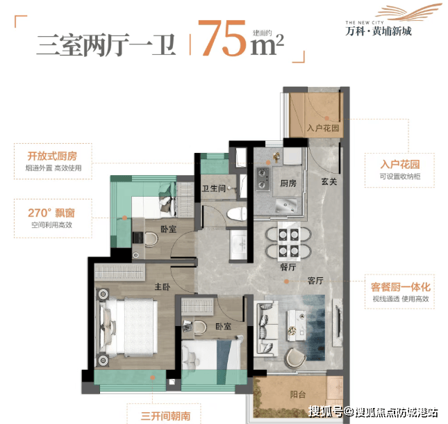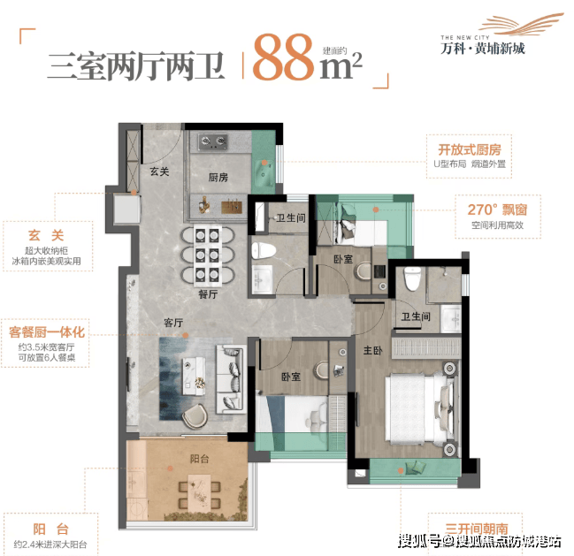 场景化描述:在您约88平方米的家里,实现了四开间朝南,阳光从清晨到傍晚洒满客厅和三个房间。约6.5米宽的南向阳台,成为了孩子的游乐场和妻子的花园。主卧套房设计,保证了主人的私密与尊崇。每一平方米,都被精心设计,毫无浪费。