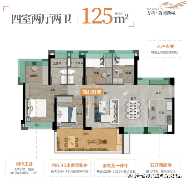 :面向二胎家庭或需要独立书房/老人房的家庭。房间数量充足,功能分区明确。通常采用横厅设计或拥有超大景观阳台,公共活动空间开阔。主卧步入式衣帽间、双台盆卫生间等配置开始出现,居住品质全面提升。