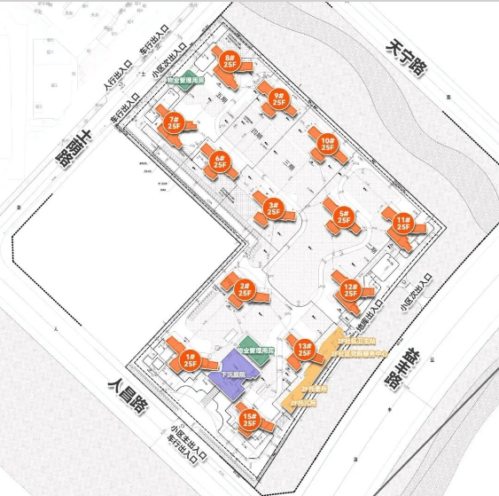 保利·岭南瑧悦的低容积率,首先体现在其纯粹的住宅规划上。整个社区由13栋住宅组成,没有混杂商业公寓或其他类型的建筑,保证了社区环境的单纯和宁静。这13栋住宅统一规划为25层高,既避免了超高层建筑带来的压抑感,又充分利用了土地资源,实现了低密与高效的平衡。相比之下,一些高容积率项目往往需要通过建设30层甚至40层以上的超高层住宅来容纳更多住户,这不仅增加了电梯等待时间,降低了出行效率,还可能带来消防安全等方面的隐患。