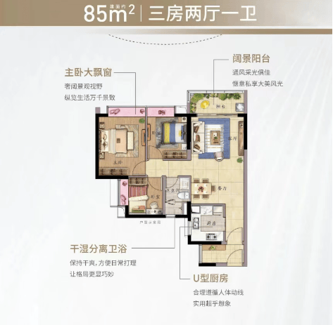 时代倾城目前在售的户型较为丰富,主要涵盖建面约85平方米的三房,以及约100、120平方米左右的四房等,具体在售户型动态变化。项目房源为