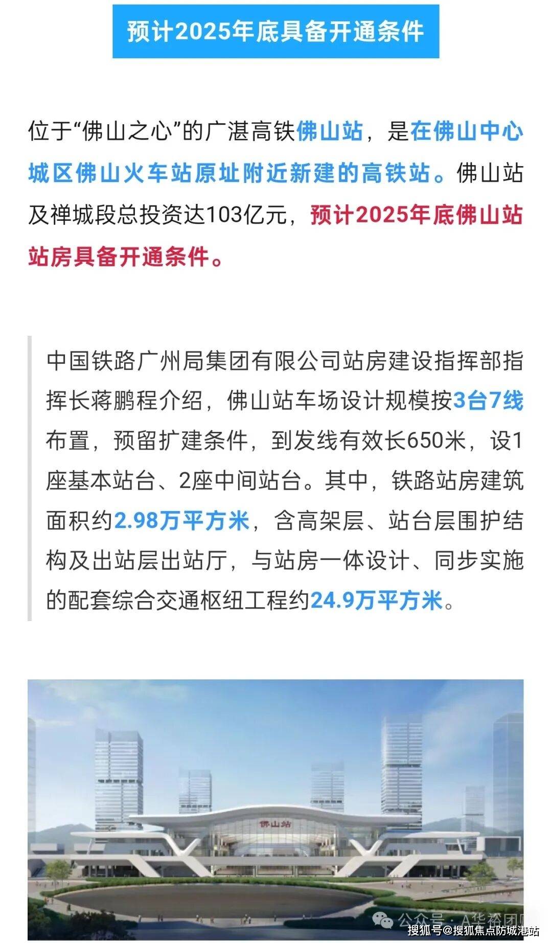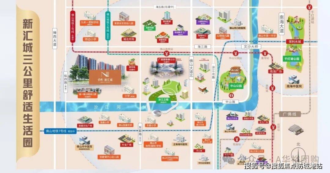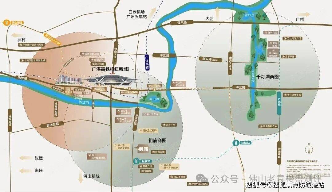 :项目距离广湛高铁佛山站仅约650-900米,属于真正的“高铁上盖”物业。该站点已于2025年底正式通车,连接广州、肇庆、云浮等地,最快20分钟可达广州南站,30分钟直达广州中心城区,极大地缩短了广佛通勤时间。