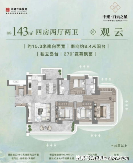 :面向终极改善人群。南向面宽超17米,无柱转角阳台视野极为开阔,可将城市美景尽收眼底。私厅设计提升了归家的仪式感,彰显主人的品味与格调。全屋华为鸿蒙智家系统,实现灯光、空调智能联动,细节处兼顾舒适与安全。总价949万左右,是身份与地位的象征。