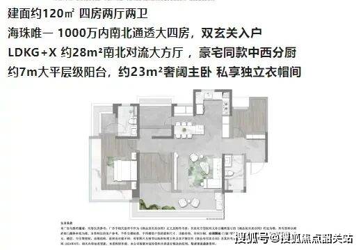 120㎡的户型实现了真正的南北通透,双玄关入户设计,增加了私密性和尊贵感。约 28㎡的大方厅南北对流,空气流通顺畅,夏季凉爽,冬季温暖。中西分厨设计,兼顾了中式爆炒和西式简餐的需求,让厨房成为家庭的美食中心。主卧套房设计,带独立卫生间,私密性极佳。另外三个房间布局合理,采光充足。总价在 1000 万以内就能拿下如此宽敞舒适的四房,对于改善型家庭来说,吸引力巨大。