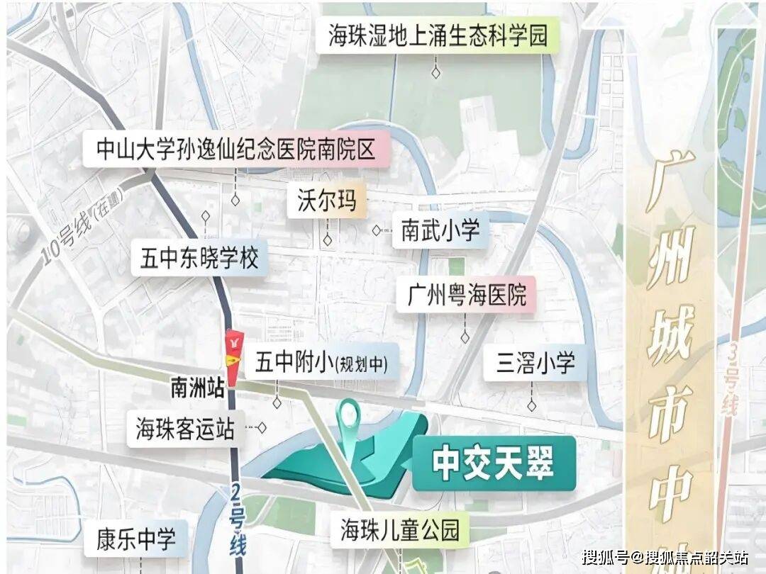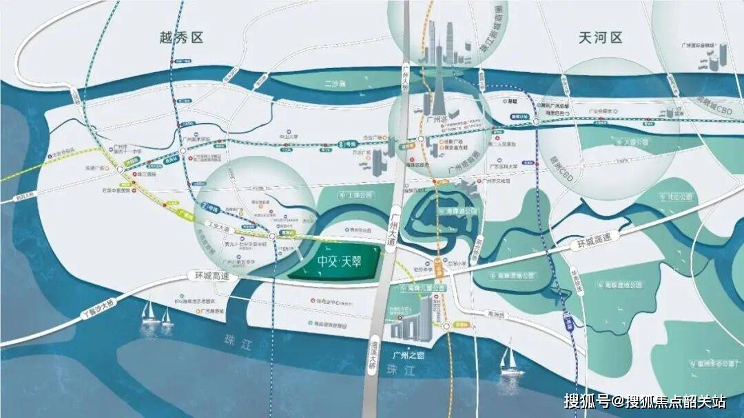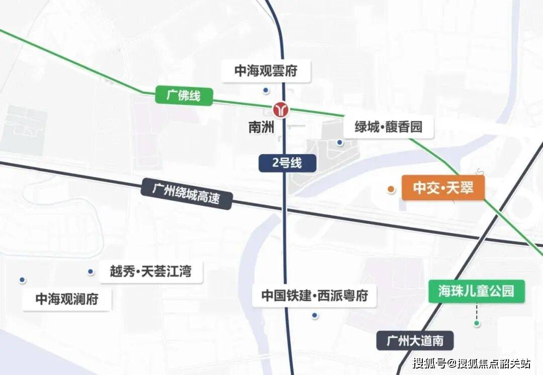 除了生态环境,中交天翠在交通网络上的布局也极具前瞻性。项目紧邻地铁2号线与广佛线交汇的南洲站,直线分钟即可进站。这一距离在地铁站点密集的海珠区虽然不算最短,但对于一个大型社区而言,已经是非常理想的通勤距离。更重要的是,从这里出发,3站即可直达客村,5站便可通达珠江新城与琶洲两大CBD。这意味着,居住在中海天翠,实际上就是站在了广州经济命脉的枢纽之上。无论是去天河上班,还是在琶洲从事互联网工作,半小时通勤圈都能轻松实现。