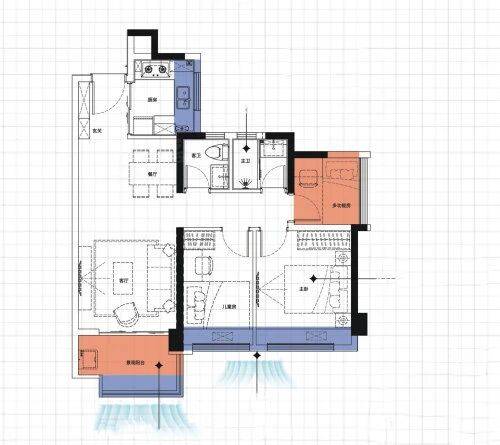 超大的阳台是该户型的一大亮点。阳台视野开阔,可远眺山景或俯瞰社区园林,是家人聚会、品茶聊天、种植花草的理想场所。南北通透的格局,使得室内空气流通顺畅,冬暖夏凉,居住舒适度极高。