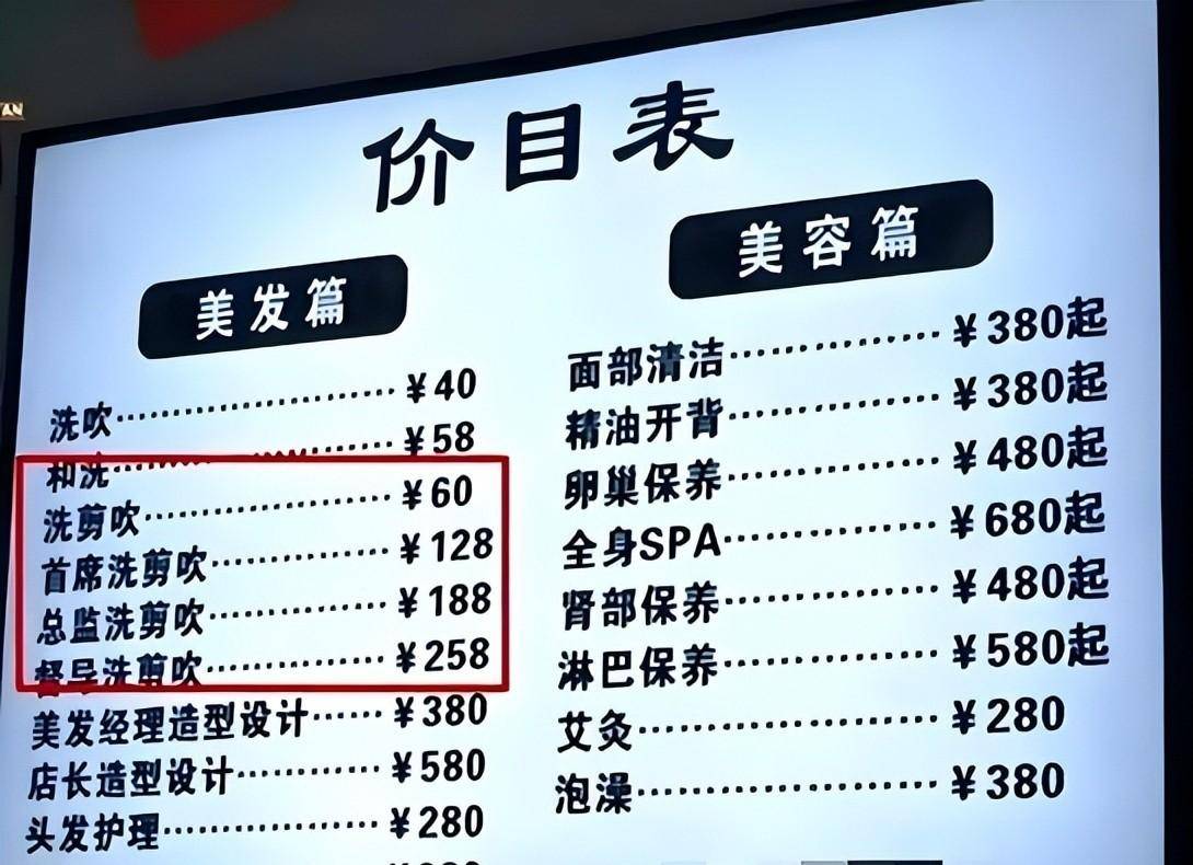 步入如今随处可见的理发店,其服务流程几乎如出一辙,形成了一种程式化的模式。震耳欲聋的音乐充斥着空间,黑白灰为主基调的冷淡装修风格,在顾客尚未落座之际,一杯温水便已先行送上,服务流程化而略显刻板。紧随其后的是一张厚重的价目表,上面密密麻麻地罗列着令人眼花缭乱的头衔:“资深设计师”、“创意总监”、“技术督导”乃至“艺术总监”,仿佛每一个称谓都蕴含着非凡的技术与艺术造诣。