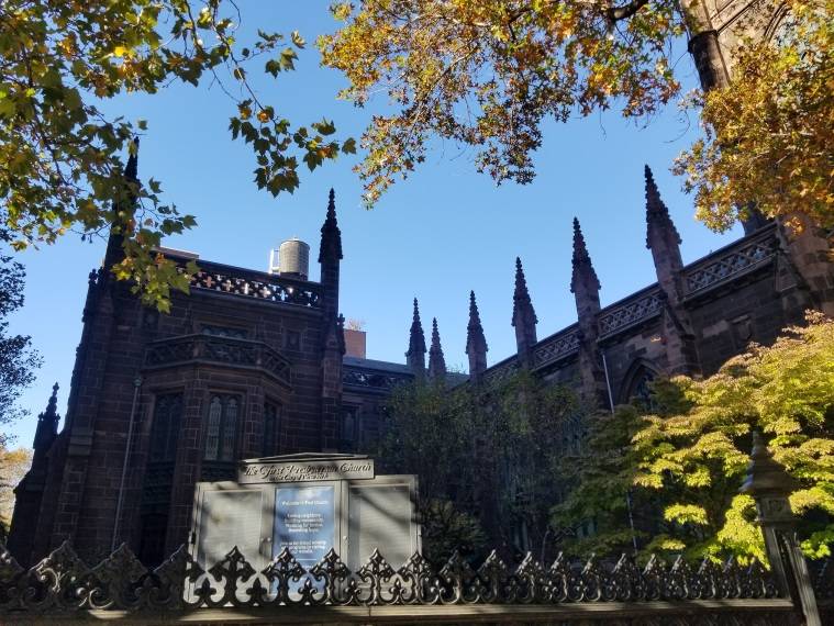 我绕着前街后巷逛了一圈,发现坚守本地的曼哈顿首座长老会教堂,至今仍保留着当年鼎盛时的气派。昔日每逢礼拜钟声响起,这对母女便相携相扶,准时步入寄托信仰的圣殿。半个世纪前,也正因长老会的机缘,宁波孤儿金韵梅与赴华传教的麦嘉缔夫妇结缘,两支异国血脉,最终融为一世亲人。
