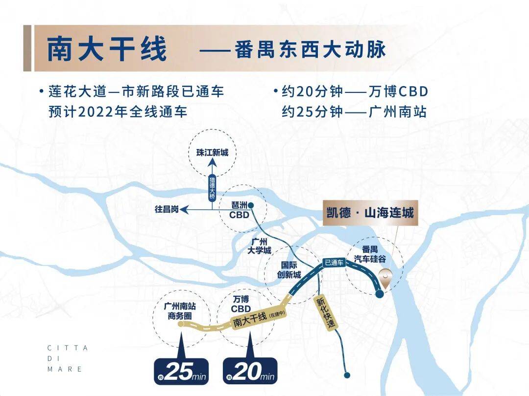 自驾:项目自驾较为方便,目前南大干线已全线开通,去往南站、万博、大学城、创新湾等地都很快,去往琶洲仅需 26 分钟车程。