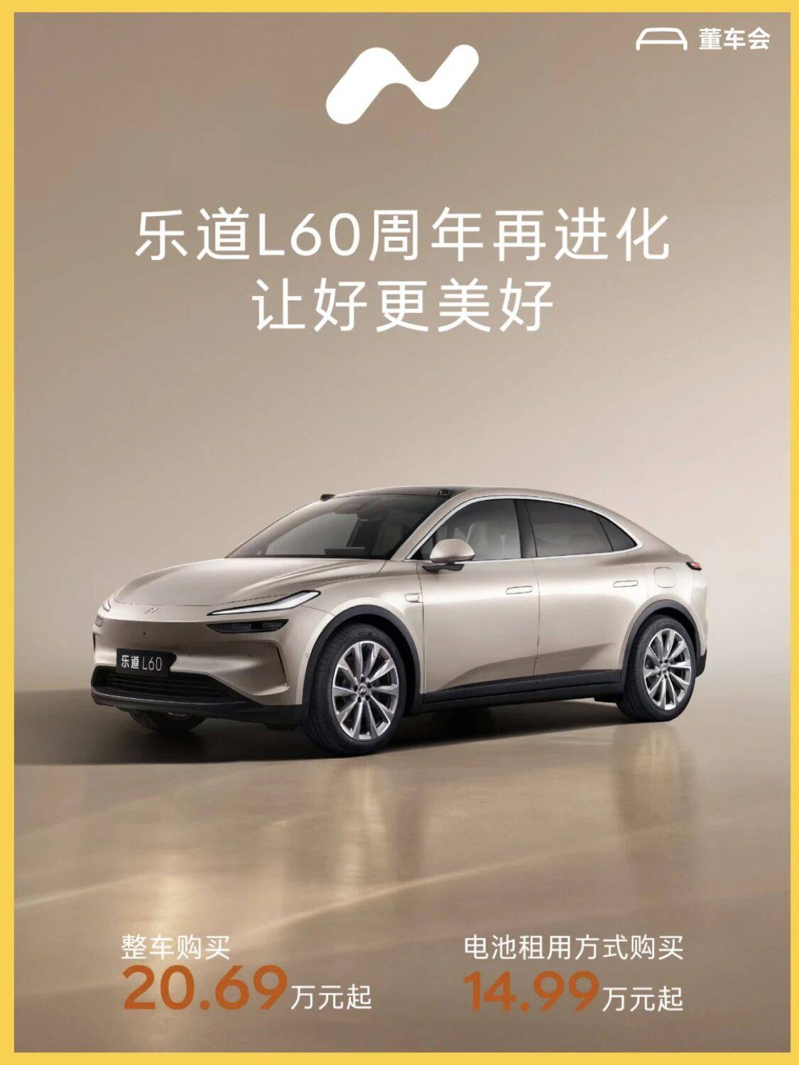 乐道汽车于昨日推出了升级款的 L60,产品力有所提升,但价格维持不变,依旧为整车购买 20.69 万元起,租电 14.99 万元起。
